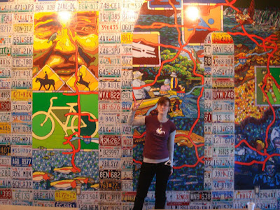 The Missouri rest stop was surprisingly cool, with hotel coupons, free coffee(!) and a giant mural: